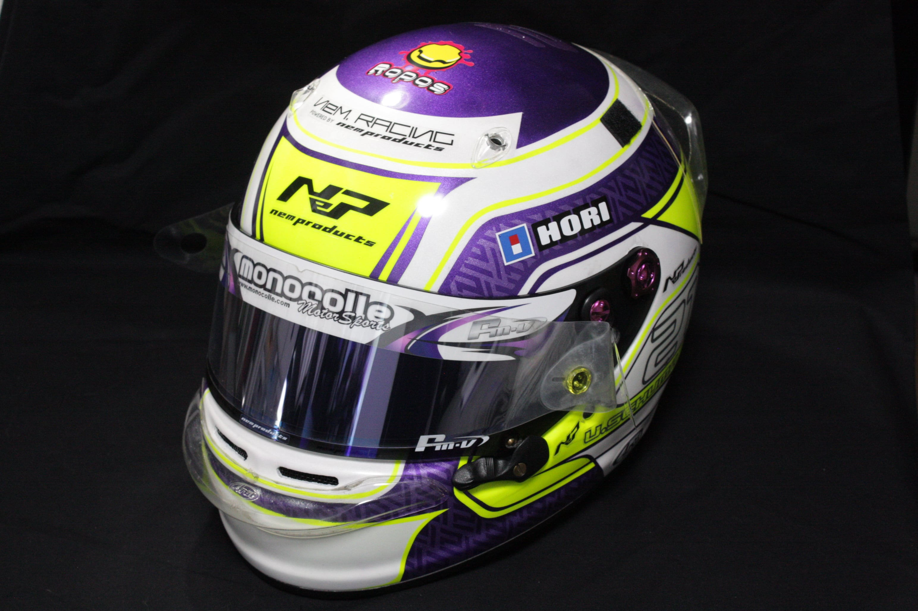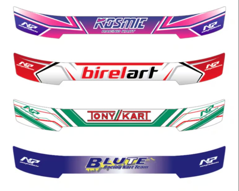 バイザーステッカー事例バイザーステッカーのデザイン作成、ご指定デザインのデータ描き起こし、ステッカーの作成まで一貫して対応可能です。オーダーフォームからお気軽にお問い合わせください。